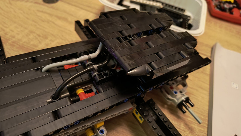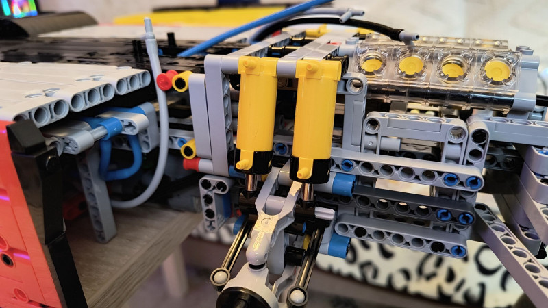 Ami ezt a szettet bonyolulttá teszi, az a pneumatikus rendszer. A motorok és az elektronika nem sokban különbözik az AMG ONE és Yangwang U9-ben lévőktől, viszont itt előny, hogy a jóval nagyobb méret miatt nem kell szenvedni a kábelek elrendezésével.