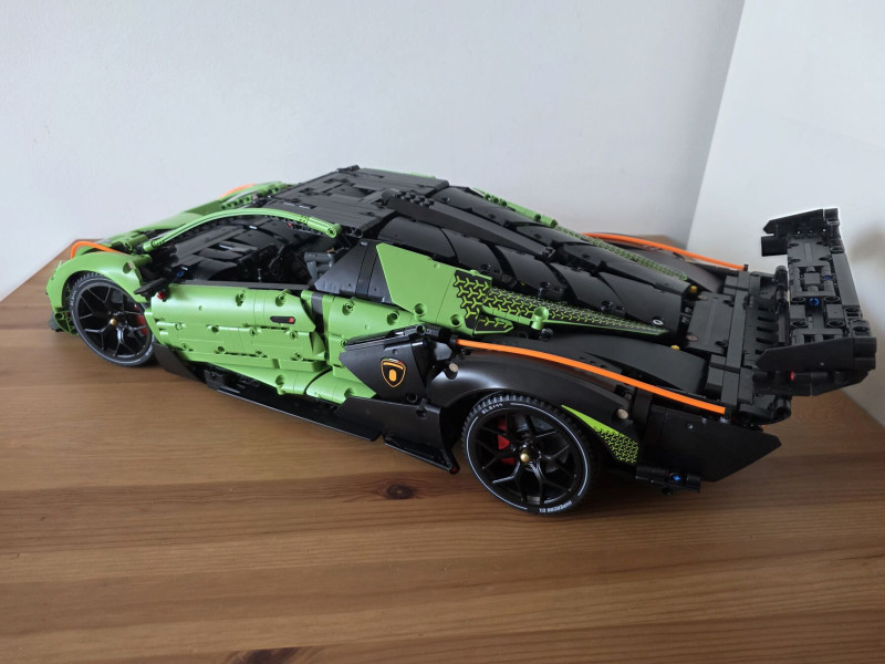A hátsó panel egyben levehető könnyen, az első panel zárjához kicsit macerásabb hozzáférni, de az is levehető. Elég alacsony a hasmagasság, emiatt a felfüggesztés útja annyira nem látványos, de cserébe nem is néz ki inkább rally autónak mint sok LEGO modell. Tetszik, hogy sok kis apró módosítást enged (több színű ülés, fékbetét, motorborítás, kerékanya, váltó arány).