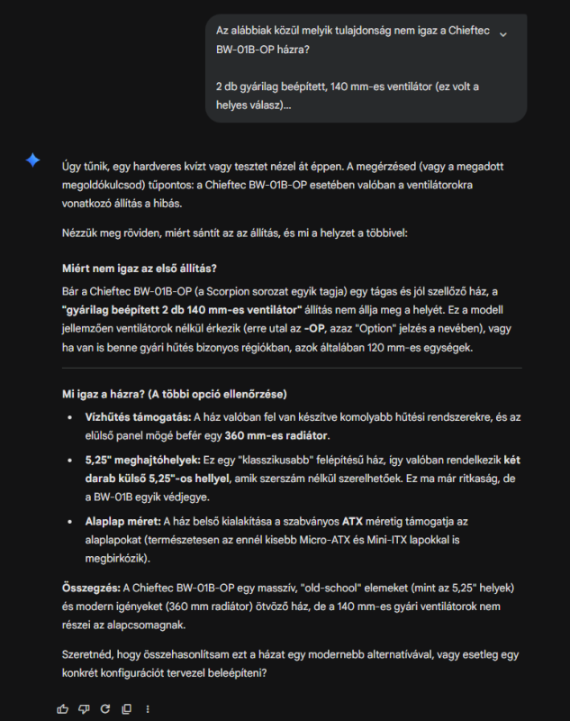 Na már rögtön a másodiknál elsőre félrevezető infot adott az AI. De másodjára amikor megkértem adjon már linket hozzá hol írják hogy van benne olyan, egyből írja ja bocs tévedtem és a másik a helyes válasz