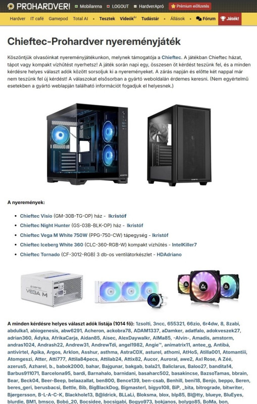 Köszönjük a lehetőséget a Chieftec és PH csapatnak is ! Sok sikert kívánok mindenkinek