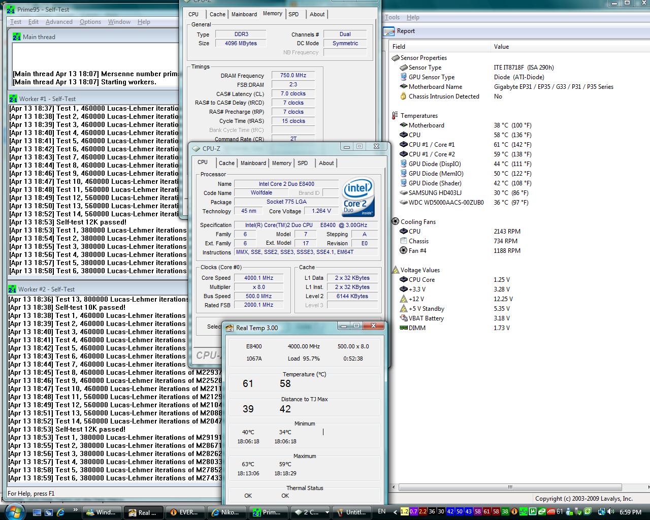 1 óra 43 percig futott hiba nélkül. Kijelenthető, hogy stabil a rendszer 8x400-zon 1,325V-on. Lehet megpróbálom majd kicsit lejjebb vinni a feszkót....Most 39-40 fok körül megy de a Prime alatt felment 62-63 fokra.