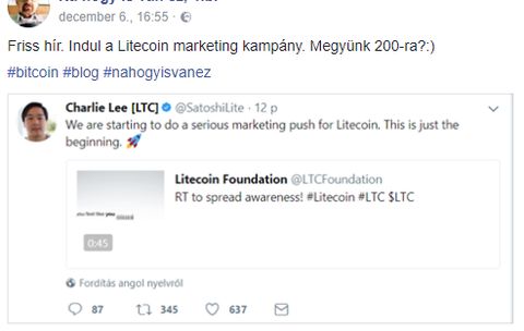 LTC/BTC keresztárfolyam jelenleg kb. 0,010
