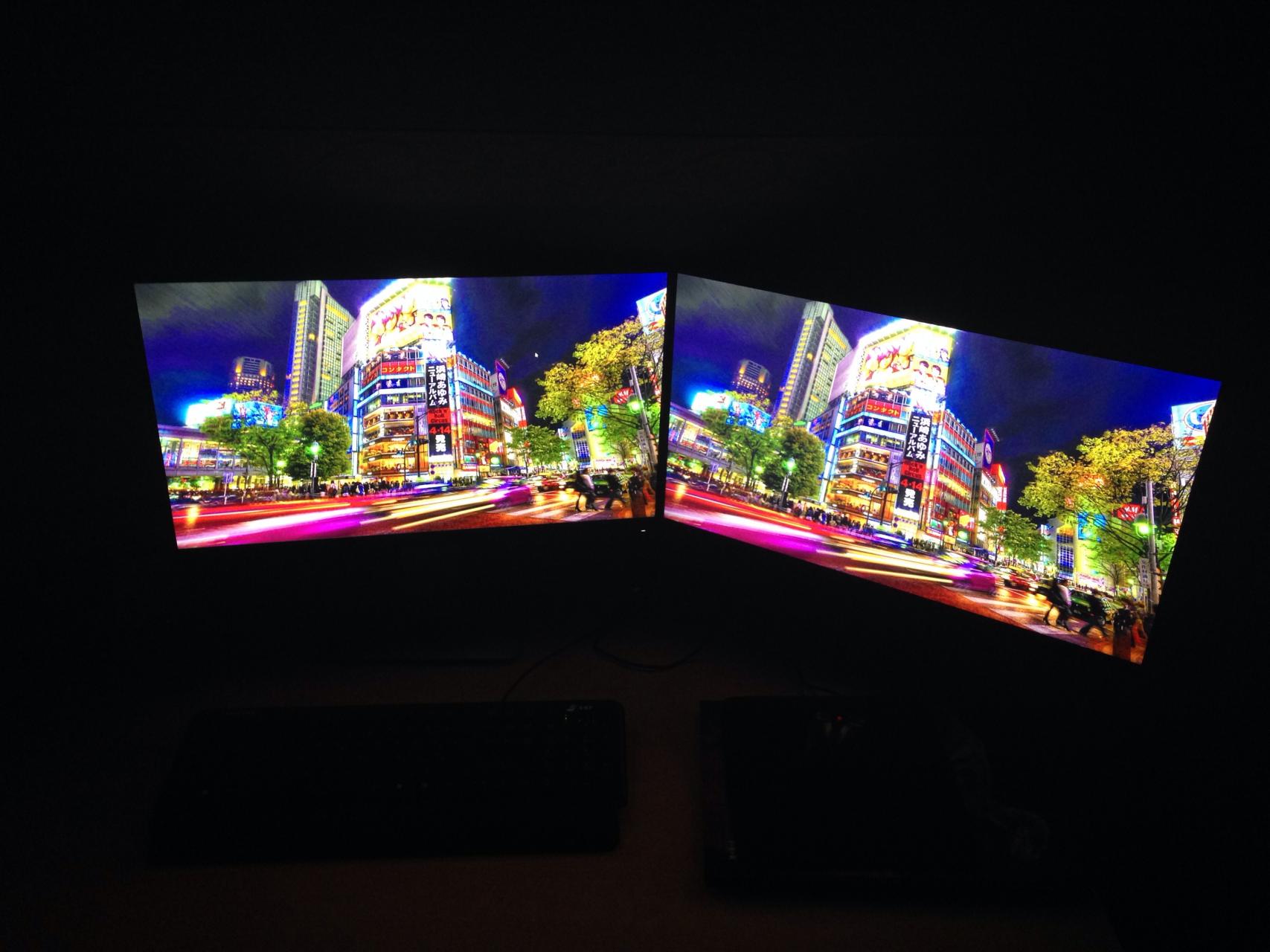 A vékony káva némileg mókusvakítás, de engem mégis ezzel fogtak meg. Gondolkozom erősen két ilyen megjelenítő beszerzésén. Van esetleg aki ilyen felállásban használja őket?