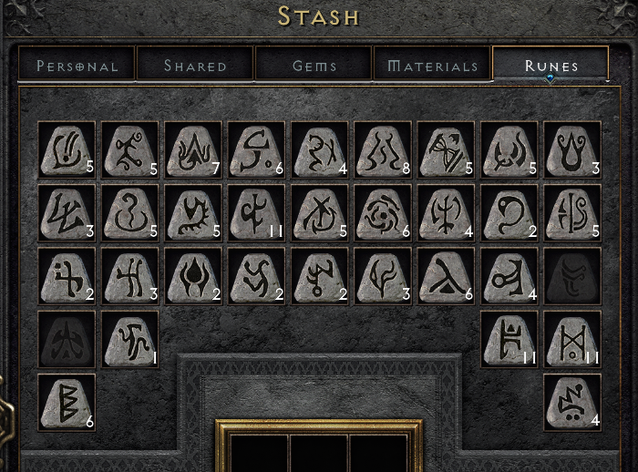 Nekem jelenleg így fest, már amiket átpakoltam - egyelőre nem volt türelmem átnézni az összes karimat. Online tolom, viszont traid nélkül és soloban. Ber rúnák és egy Jah