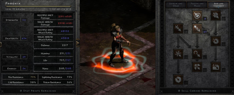 (És az a durva, hogy még így sem tartott sokáig.) 1.10 előtti időszakban kedvencm volt a bowazon. (Terepre multiple shot, amivel simán egész pályákat le lehetett takarítani, a keményebb dögökre meg az említett guided arrow, ami pierce-szel iszonyat szemét volt, és röhejes is persze, ahogy katonás rendben ki és be jártak a lövedékek oda és vissza az adott dögben.) -