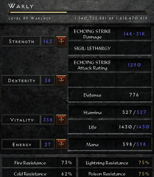 (Sokkal élvezetesebb, haladósabb így a játék.)Viszont ez a harmadik warlockom (Eldritch skillfa) eddig kifejezetten tetszik! Ugyanolyan röhejesen táp, mint a Chaos és a Demon ág, de játékstílusra bejövősebb azoknál. (Azért szintezésre, játékon végigszaladni vitathatatlanul a Chaos ág a legegyszerűbb/legkézenfekvőbb. Legalábbis solo self found módban, ahogy én mindig játszani szoktam.)