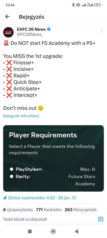 - Valahol meg lehet nézni hogy hogyan fog kinézni az fs academy evo végére a játékos? Csak hogy bele lehet-e tenni nagyon alap lapot is, vagy nem árt ha már vannak normális statjai az elején.. -