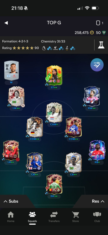 Elkészült a team, elköltöttem mind a 11,5 millió coinom amit a játék megjelenése óta gyűjtöttem. Szép kis grind volt, indulhat a TOTS-ra gyűjtés.