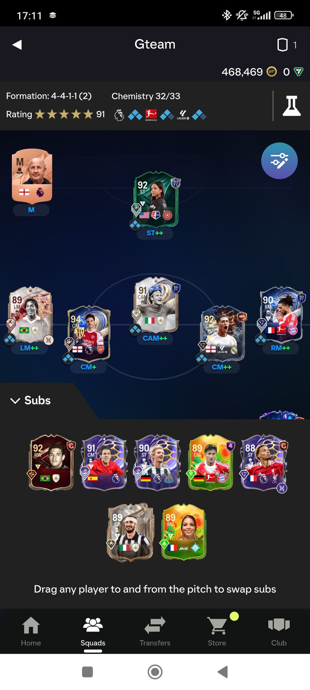 Én ezt a Gilberto Silva SBC-t raktam ki, mert már valahova rakni kellett a foddert, ő is ilyen B-C-D csapatos játékos. A body typeja jó egyébként meg a PS-ek, de a statok miatt gyenge kezdőbe.
