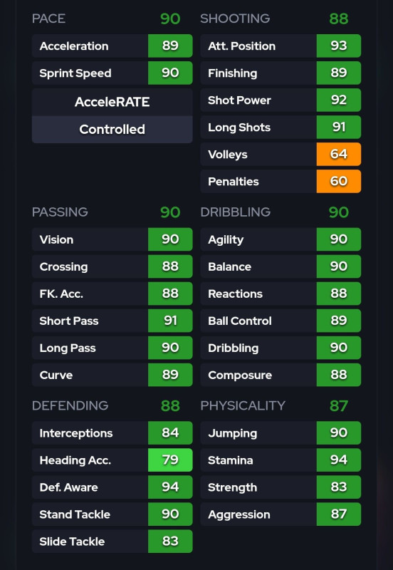 Mondjuk remelem nem pont shootingra kap 99-es statot, de igen, baromi jo lap lesz, mint a tavalyi Fermin. Aztan a jatek utolso 3-4 honapjaban mar evozni is lehet majd. Felig raktam meg csak ki, mert olyan ures a klub, mint a jatek elso napjan volt, de 1-2 napon belul befejezem, ugyis nagyon kellett egy szelsovedo a csapatba. O lesz az RB, Cambiaso meg atmegy LB-be (az sbc lapja, de mar 89-re evozva, o kirobbanthatatlan, nagyon stabil).