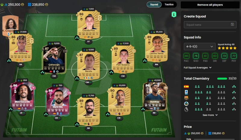 yamal nekemis megvan meg a Nico williams is,ők extrák nagyon csak èn inkább a Bayernes vonalat túrom(hamár játszom akkor azokkal akiket kedvelem)