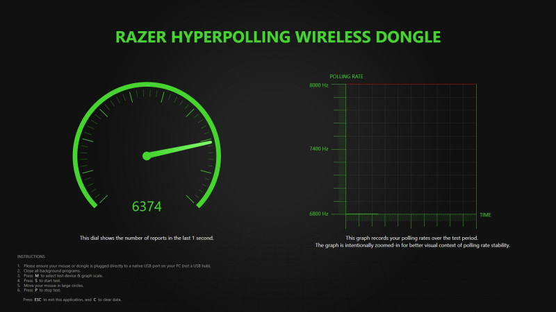 Letöltöttem a Razer polling testert és azt tapasztalom, hogy mindig a beállított érték alatt mérek, 8000 Hz-nél max 6500, 4000-nél max 3700-et.