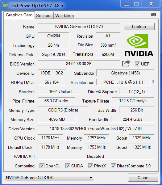 Nagyon kevés pontod van. Már egy 280x/770-es szintnek is 10k gpu score körül kell egpuval is lennie, nem hogy egy 970-nek... Kb fele a várható értéknek.