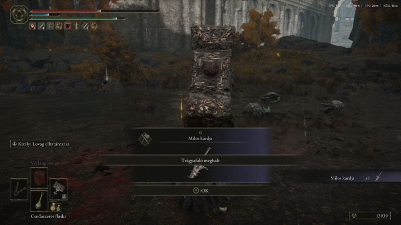 Egy Claymore÷25 karddal toltam végig,de most váltok egy boss fegyverre Axe of Godrick÷10 lesz.