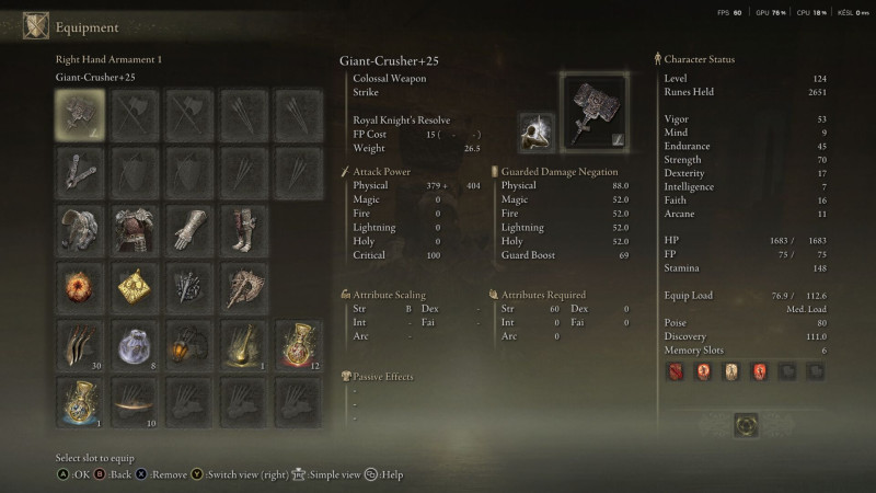 Szerintem egy bleed, dual-katanás bulid a gyorsabb mozgással felüdülés lenne. Viszont a DLC-re jók ezek a nagy fegyverek is amik könnyebben megtörik az ellenfelet azt mondják. Én ebből semmit nem tapasztaltam, így vissza is raktam a pontjaimat.