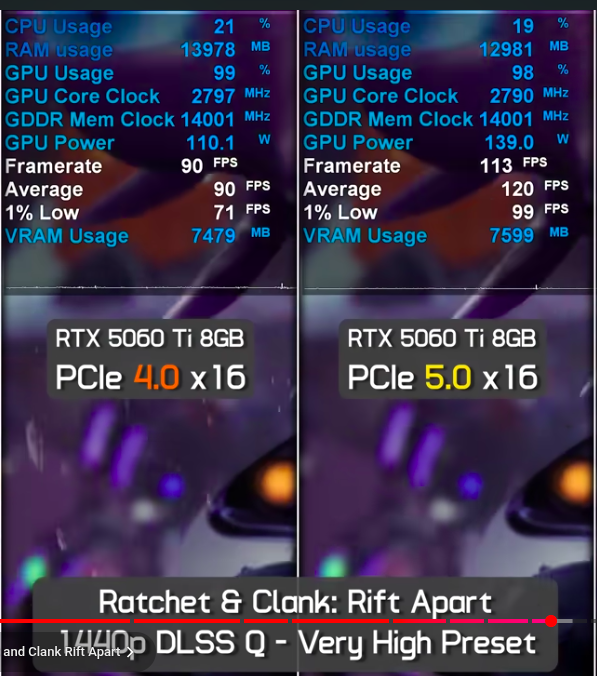 VRAM hiányos esetekben a GEN5 fontos lehet ! -