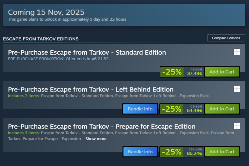 "You will not have to buy Escape from Tarkov again on Steam after the 1.0 release; any purchase made through the game's official channels will allow you to play on the Steam version. The game is planned for a 1.0 launch on November 15, 2025, and players who have purchased the game previously will be able to access it on Steam without re-purchasing it."