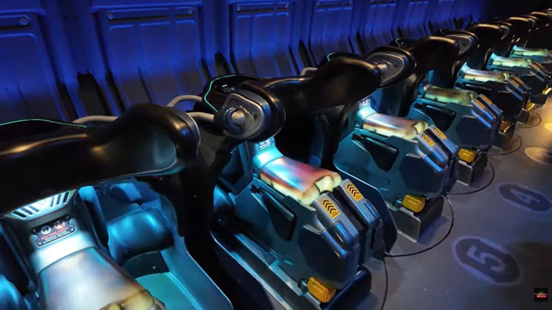 Hasonló volt még egy Harry Potteres téma, amire rengeteget kellett volna várni, így sajna kimaradt. Ott az ülés egy sok tengelyes Kuka kar tetején van, közben az egész kar egy köréd rakott díszlet/vetített környezeten sínen mozog, mint egy hullámvasút. Volt 3D-s pálya rajz, ahogy néztem a komplett kar liftbe is bemegy és leesik, meg felhúzzák, szóval elég törpösen ki lett találva az is.