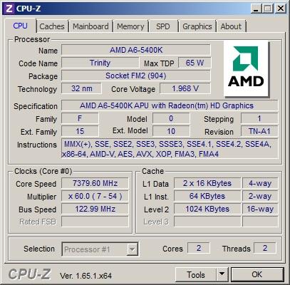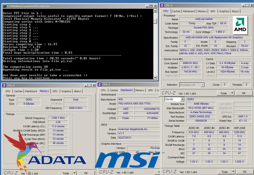 A tesztkonfigot a legkisebb "k" jelzésű AMD APU ( A6-5400K), a legjobb FM2-s lap (MSI A85X-G65) és az ADATA 2400MHZ CL11-s kitje alkotta.