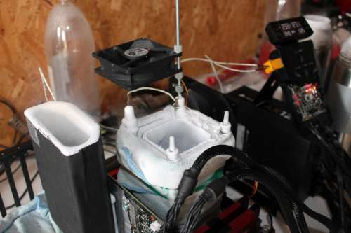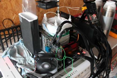 Szokásos UD3P, 2x1 Cellshock, 60-as OCZ SSD, tinyxp/vagy george_oc xp-je, immár normális szigetelés és rendes lefogató a kompihoz.