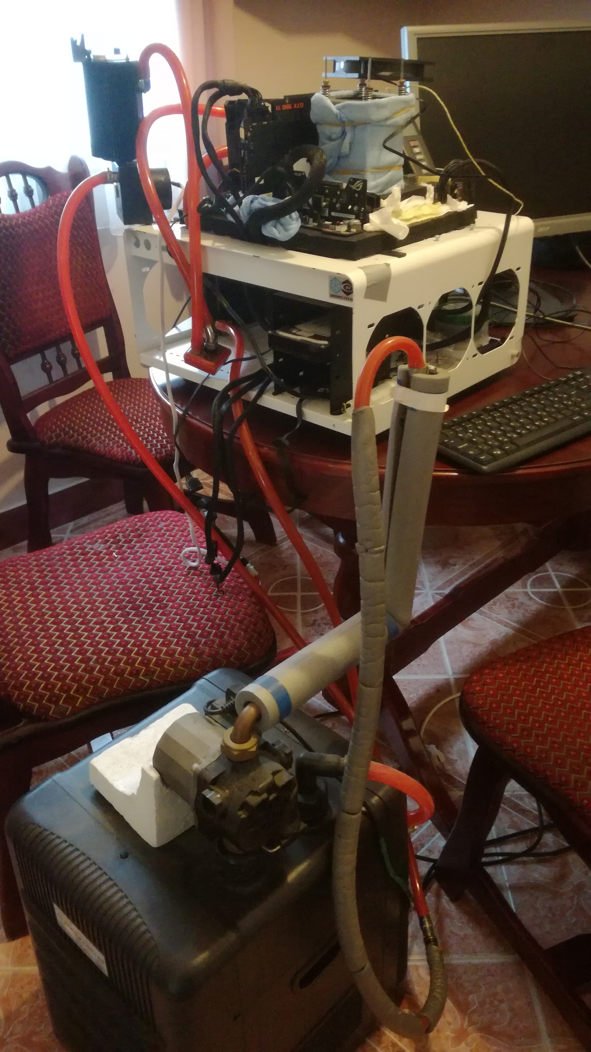 Szerintem én meg vagyok babonázva a live tuningokkal ugyanis nem kevesebb, mint 6x szedtem szét a setupot. No de sorban:Annak rendje módja szerinti előkészületek, behűtés és -150°C coldbug. No ez fasza, megint kezdődik. Win alatt ugyan ez, coldboot csak -140°C, még jobb. Szét majd újra szerelés, debug 55 code. Hurrá, haladunk.