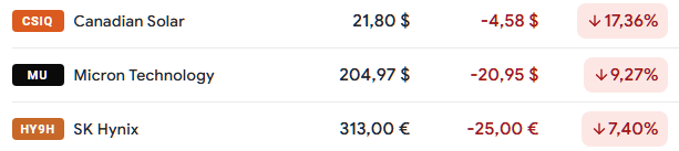 Micron, SK Hynix (épp ma esett mindkettő 6%-ot, de ma vérengzés van), és ha lenne szabad lóvém én ma tuti vennék egyjó adag Canadian Solart a következő felmenésre.