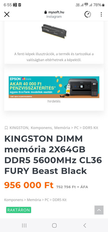 Augusztus vègèn vettem XPG ramokat 2 x 24gb. Akkor volt 175€. Ma ugyanez 475€