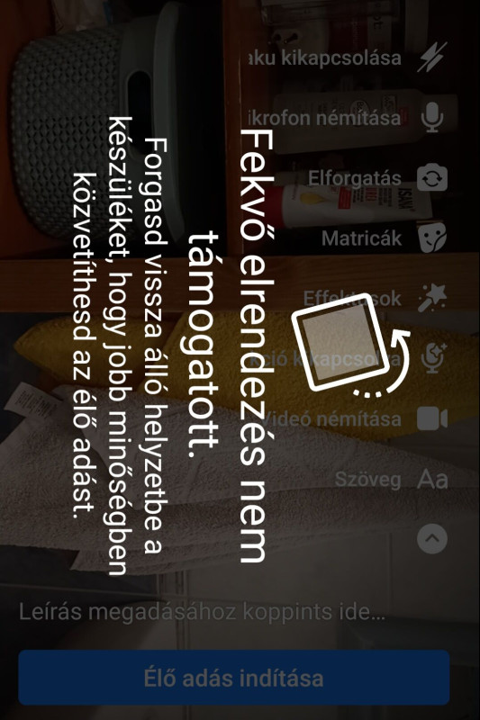Egy facebook csoportomban szeretnék élő videót készíteni de a telefont nem engedi elforgatni csak álló módban tudom használni.