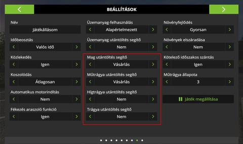 Ki kell kapcsolni a kötelező időszakos szántást és a műtrágya állapotot 1x állítani.