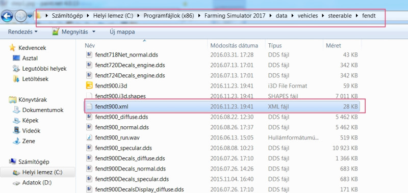 2. bemásolni a gép xml jét (eredeti fájl elérési útja a képen)