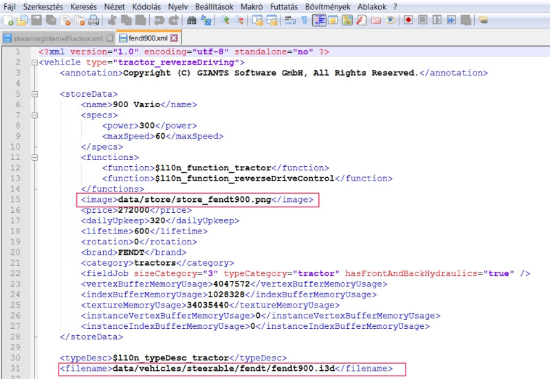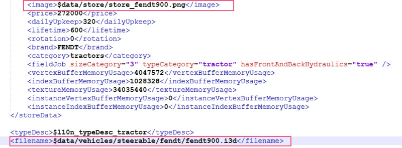 <iconFilename -- annak a képnek az elérési útja, ami a modok kijelölési képernyőjén jelenik meg ez is maradhat üres* az xml –ben változtathatóak többek között az ár, fenntartási költség, élettartam, motor teljesítménye, többféle választható motor, sebesség, kapacitás, hangok … vagy akár a különböző vezérelhető/mozgó alkatrészek végállásai, mozgási sebessége, stb.
