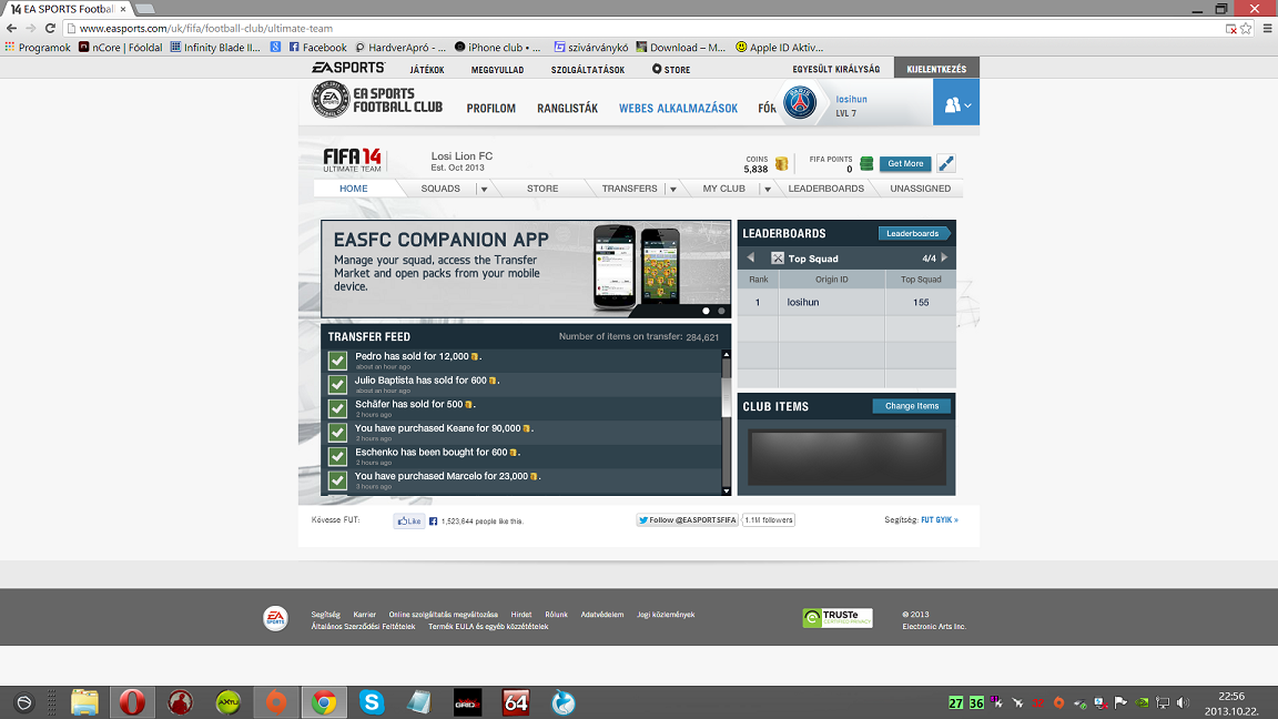 az a durva hogy meg változtattam mert elsönek tegnap elött lenyultak 90 ezrem vettek a nevemben egy 300 érö játékos 90 ezerért akkor meg változtattam és rá másnap meg eladták a két legjobb legdrágább játékosom ,1 meber tudta csak a belépési adataim akitöl vettem az origin kodot mert akkor meg másnapra eltüntek a gold pakjaim és ö segitet le levelezni az ea val hogy vissza kapjam az meg is történt majd másnapra lehuztak 90 ezerel akkor megváltoztattam a dolgokat,és szoltam az eladonak akitöl a játék van hogy intéze már ezt is neki meg adtam a dolgokat a belépéshez erre rá 4 órára eladodott a két legdrágább játékosom 1000 ért a két játékos 110 ezret ért,mikor ezt szóvá tettem neki megsértödött hogy mit gyanusitgatom,mert kinoban oda bigyesztettem neki hogy most te szorakozol velem mert nem hogy a 90 ezrem nem kaptam vissza de gyorsan 2 játékosom is aladodott