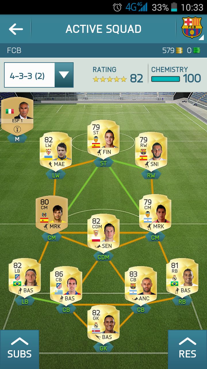 Váltottam 4-3-3(2)re, Perezt betettem Marksman-al CDM-be és előtte van Rakitic és Iniesta.