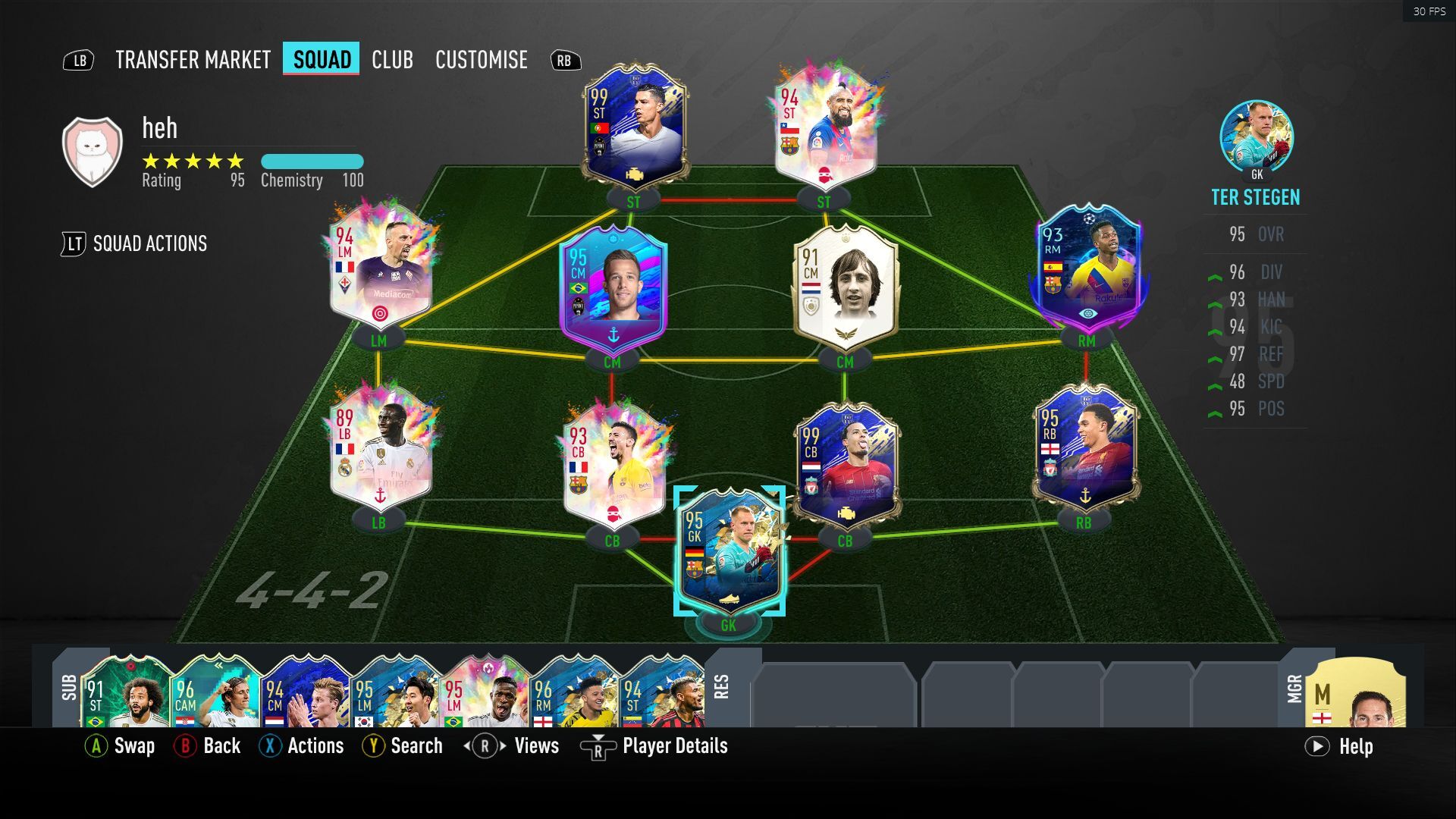Mint tavaly a Summer Heat ami elég jó kis promo volt, nem beszélve az EBről, de arról nem tudok nyilatkozni, mert nagy világesemény során még nem Fifáztam. Lesz sok sbc, wl pickek, minden kutyafasza, szóval nem kell aggódni, ha eddig jól játszottál ezután is jól fogsz (a körülményeket vegyük ki), ha nem esik 1 TOTS lap sem, akkor is.Nekem ez volt a végső csapat. Asszem csak Cruyff volt eladható