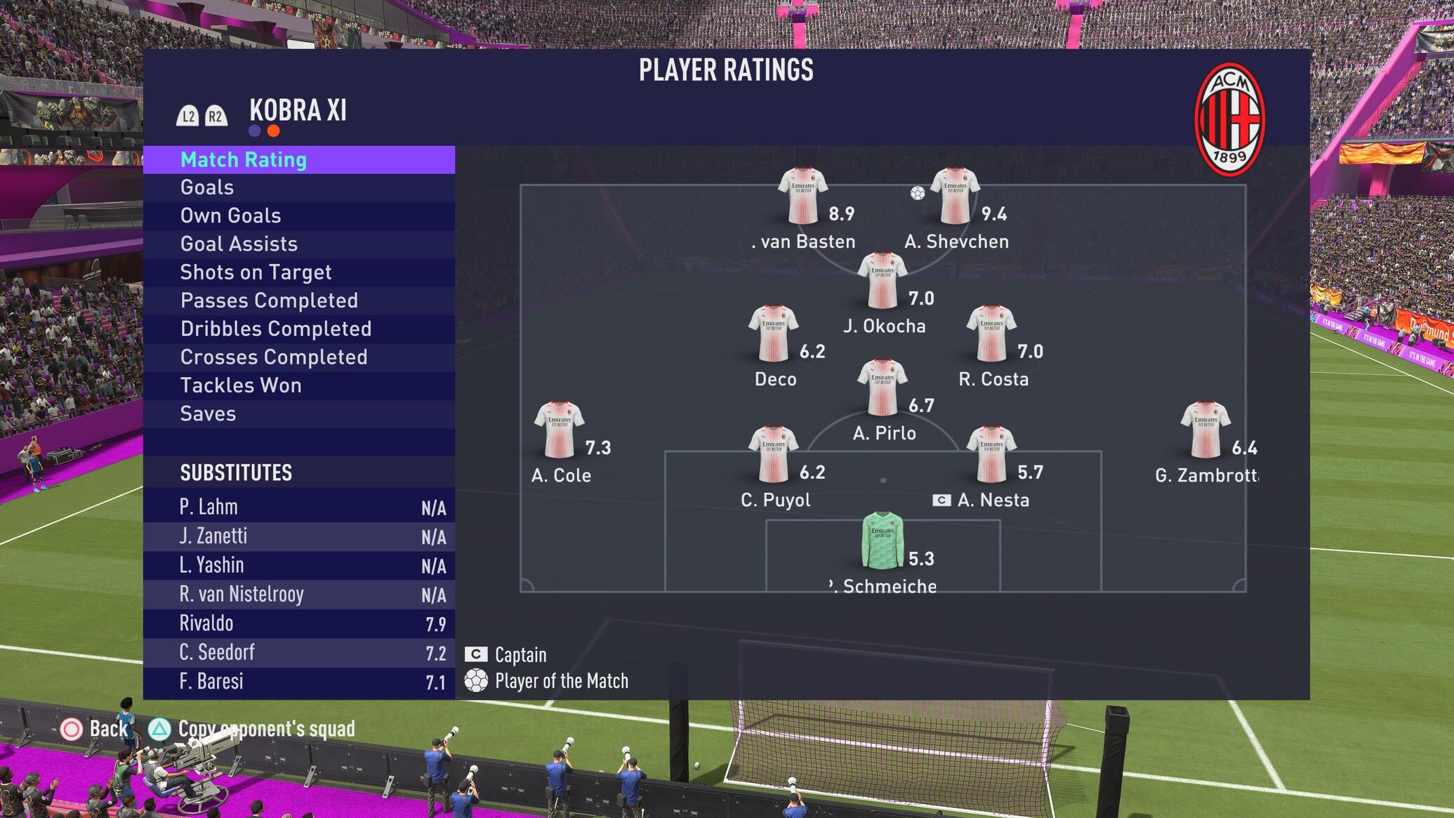 szombat délután egy fokkal jobb volt de este felé megint jött a bullshit generátor, olyan gólokat kaptam és rúgtam hogy az kabaré. Az hogy a gombnyomásokat nem regisztrálta vagy 3 másodperccel később hajtotta végre már szinte természetes volt... -