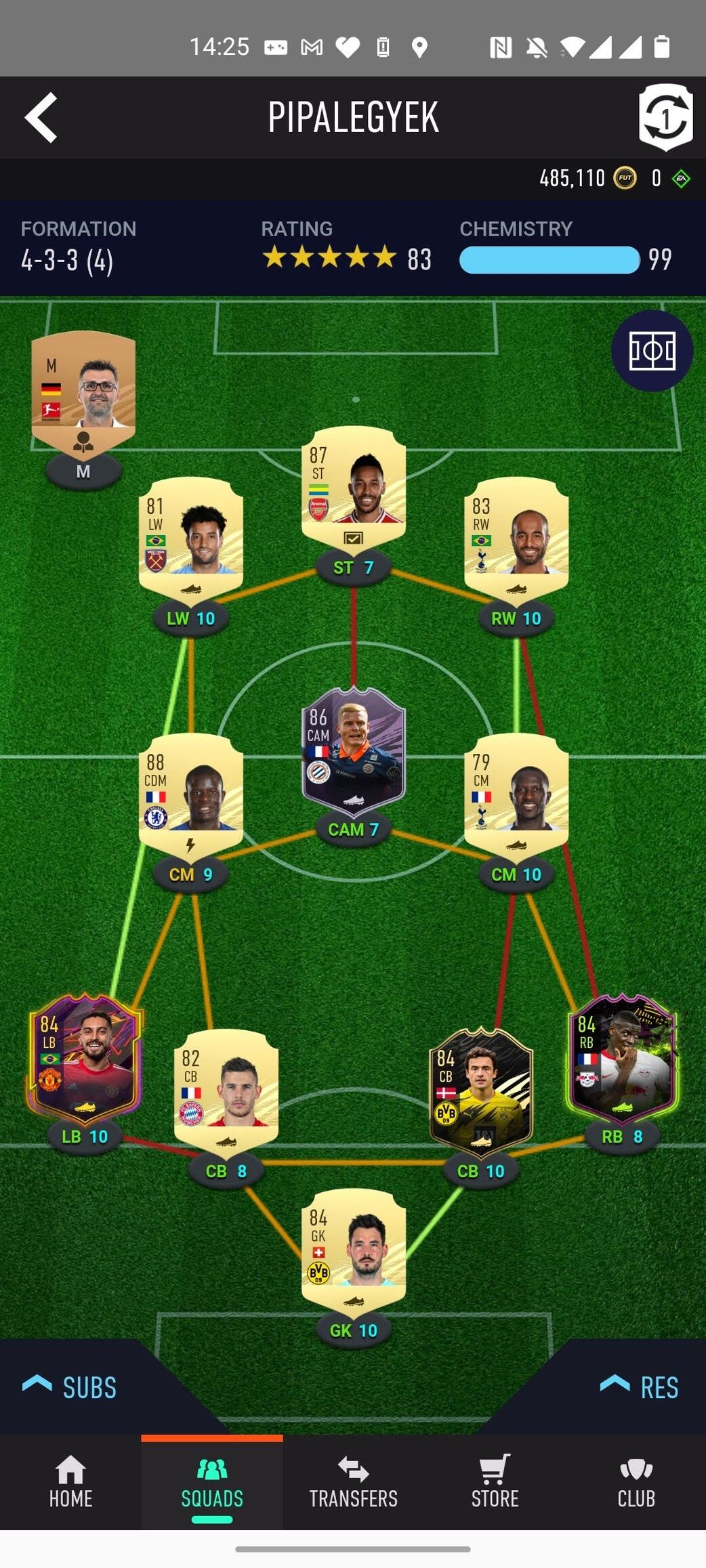 Idén (mivel gyűjtöm Puskásra a lét) kizárólag pakkokból, objective-ekből jövő játékosokból építettem csapatot - innen csak Felipe A. és Bürki eladható. Mollet meg szépen becsúszik oda középre, 10 meccs után a csapat chemi 100 lesz, ezzel elvagyok egy ideig