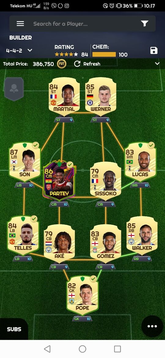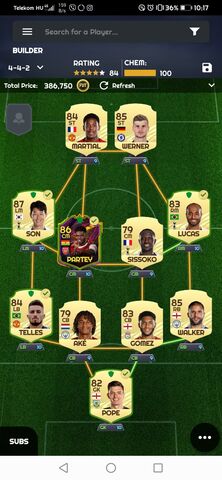 Ez a mostani keretem. Mindenki eladható belőle, Partey talán 170-et, Son kb 90-et ér, az még 260 a meglévő 380 mellé.