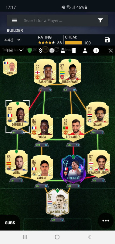 Én ezt a csapatott dobtam össze reggel. (Bruno nyitás volt ő nem biztos hogy marad. Oda Sissoko a terv). Nem tudom várható e még ezeknél a játékosoknál pénteken nagyobb ár esés. (Alba helyére még lehet Mend it vissza veszem, de neki most megyeget lefele az ára. Meg Dembelé helyet IF Maximin en gondolkoztam még).Nyomtam ma Esportos squad ellen SB ét WC szinten ( a 4 csapat felett ami van). Hát 2:1 re nyertem, de úgy hogy csomó kihagyott helyzete volt a gépnek. Azért is mondtam egy bika team már magában előnyt jelent. Auto blockal sokszot szereltek a védők.