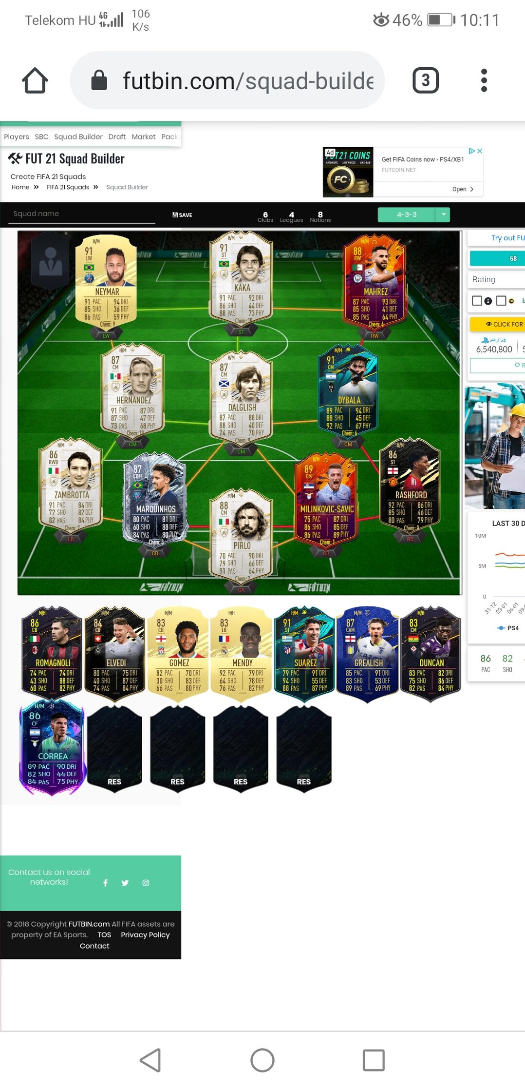 Van 650k-m +RB Gimenez 200k. De egyrészt Gimenez nem megoldás másrészt nem fogok 800-900k-t kiadni egy 600k-s lapért(IF Walker). Jó lenne egy TOTY Ramos de az upgrade meg nem adott semmit coint meg nem akarok rá költeni