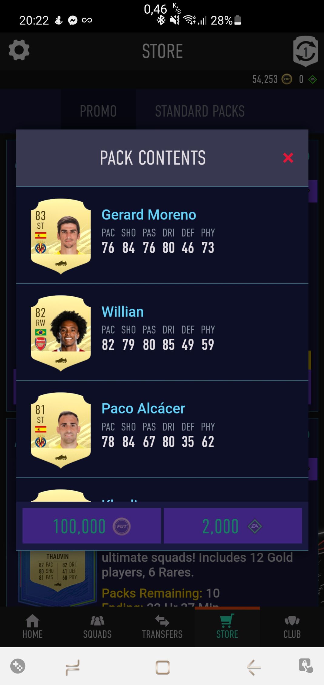 Én a mai napra hagytam a 82db pakkom kinyitását, mert csak ma volt időm. Sokat nem fűztem hozzá, de titkon bíztam benne, hogy esik legalább 1 nagy...volt rengeteg 50k pakk, 2db 100k pakk, 1db ultimate pakk, sok-sok mega, rare mega, illetve az elmúlt 3 hét sbc pakkjai, 75+-os pakkok...szóval mindenféle...