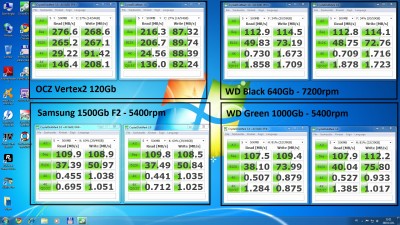 Itt az első, ahol még szűz a windows7 64bit, csak az alaplapi cuccok vannak fenn.Itt a második, ahol már a nekem fontos felhasználói progik is fel vannak pakolva. Érdekes módon itt egy kicsit csökkent a szekvenciális olvasás.