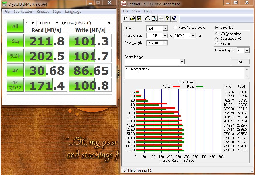 A hivatalos adatok nem minden tesztprogram esetében fognak megjelenni pontosan. Mert pl. a Corsair Force is ugyanígy 285/275MB-nak van megadva, CDM-ben a tiédhez hasonló adatokat hozott, ATTO-ban pedig megint kissé más eredményeket kap.. -