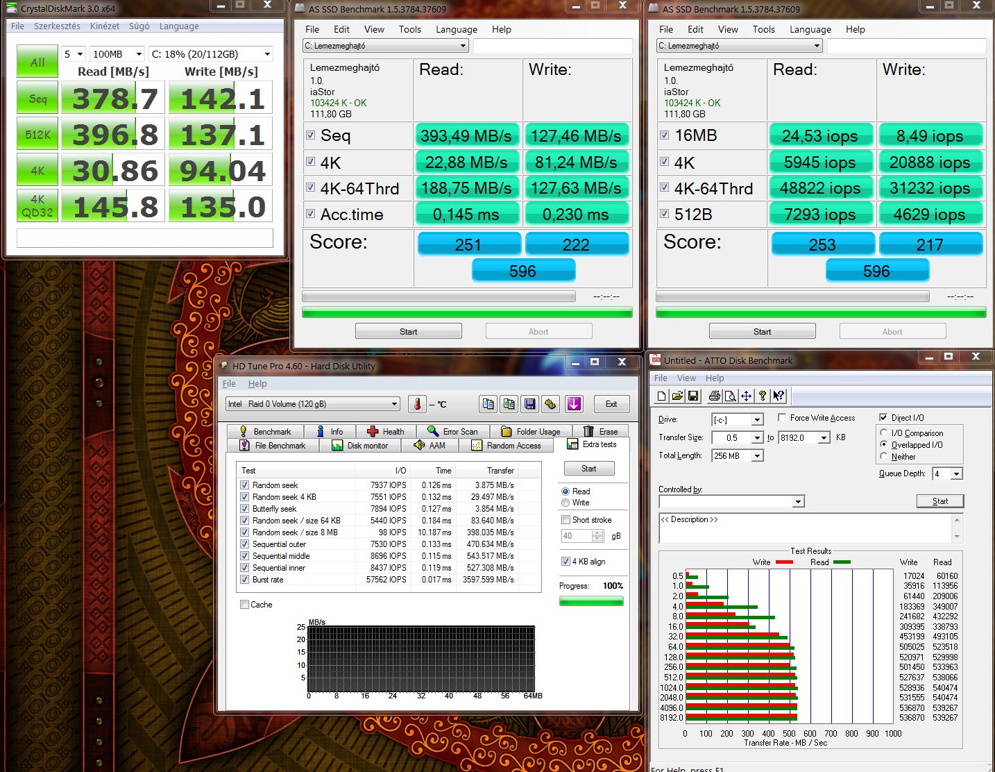 Köszönöm szépen a teszteket! Sokat hezitáltam, hogy 80 GB-os revo-t vegyek vagy 2x64 Gb-os OCZ vetrex2-őt, az utóbbi mellet döntöttem, ezek szerint jól, mert nagyobb a tárhelyem, és sebességben odaver a revo-nak, bár kíváncsi lennék egy 4k és iops tesztben mért adatoknak is CrystalDiskMark-kal és ASSD-vel. Milyen ssd-k vannak raidban, mert az egyhez képest elég furcsák az eredmények, főleg írás terén. Nekem most az atto ezt mutatja.