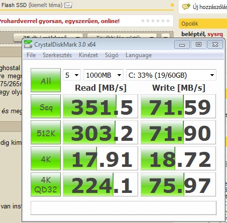 Olyan kerdesem volna hogy az mitol lehet hogy az SSD-m a crystalmark 3.0-val ha 100Mb os teszten van akkor jol porog ha 500 vagy afole megyek akkor az irasi mutatok leesnek (10Mb korul)?