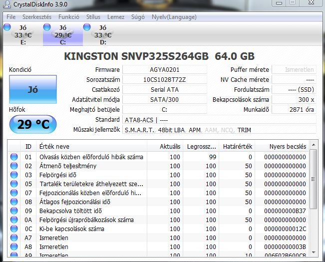 Az én SSD-m 29%-on áll és hibátlan, paraméterei, mint uj korában.