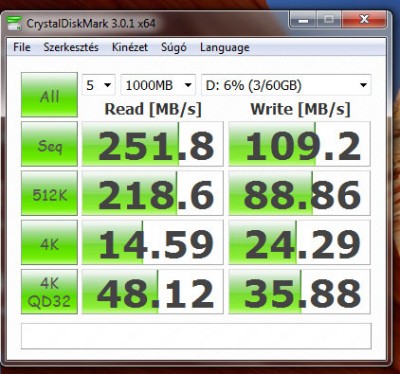 Ja, azóta feltettem 3 db nagyobb felhasználói programot, majd újra mértem. Majdnem visszajutottam a legelső eredményekhez. Most vagy az SSD ilyen hektikus, vagy a program mér össze-vissza:Összességében egy kicsit csalódtam a technikában, bár lehet, hogy akkor jönne ki az igazi előnye, ha a processzorom is erősebb volna?