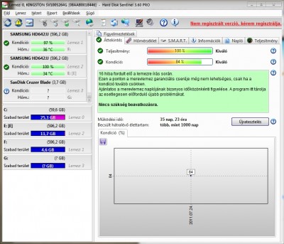 Szerintem inkább nézd a smart adatokat valamivel. De pl nekem ez a progi 100-at a hd sentinel meg 99%-ot ad kondícíóra. (1x elment az áram és ez átviteli hibát okozott sata phy e.c értéke 1 lett). De se gyenge, se hibás szektor. Szóval lósz*r az is. Nincs egyezményes dolog a smartból számított állapotra.