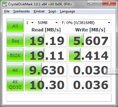 Bár a 830-as 64Gb-os Samsung-nak max írása 160Mb/s