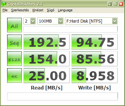 Pár százalék eltéréssel ugyanazt mértem függetlenül az OP rendszertől.Neked is X25-öd van. XP-vel próbáltad? Nálad lassabb volt?