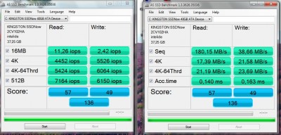 A jelenlegi HDD-nek a szekvenciális olvasási sávszélessége nem lehet több 140MB/s-nál, ez a Kingston legalább másfélszer gyorsabb ebben a versenyszámban, de az írásban sem marad le, mint a 40GB intel vezérlős Kingston.